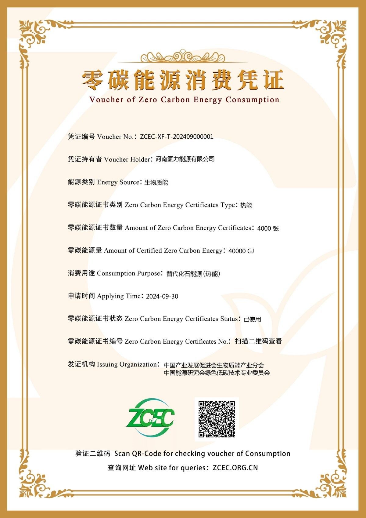 在國內首張零碳能源消費憑證頒發儀式上,鄭朝暉副會長為河南氫力能源有限公司頒發了零碳能源消費憑證,完成了“零碳能源證書自愿核證平臺”從證書申請、監測、核查、核發、認購、交易和消費全流程的閉環。