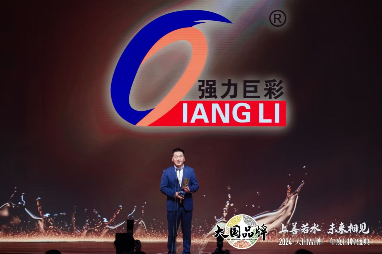 今年國牌盛典以“上善若水 未來相見”為主題,通過“大國匠心、大國責任、大國力量、大國視界”四大版塊,彰顯中國品牌在全球化進程中的自信與實力,展現他們引領未來的堅定決心與偉大愿景。強力巨彩副董事長兼總裁周國華上臺領獎,強力巨彩榮膺2024《大國品牌》國牌盛典年度品牌。