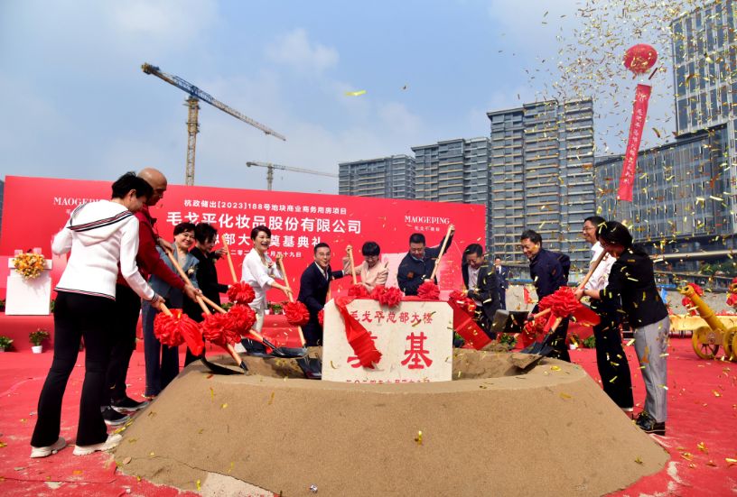 10月29日,浙江三建承建的杭政儲出[2023]188號地塊毛戈平化妝品股份有限公司總部大樓舉行開工奠基。
