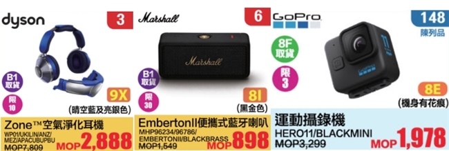 至于電器及家具廣場,各式電器及家居用品都有不同程度的優惠折扣,精選床品百元起,最潮「戴森」電器低至37折起!「GoPro」運動攝錄機直降千元!各式商品優惠定能滿足各生活達人的心意。