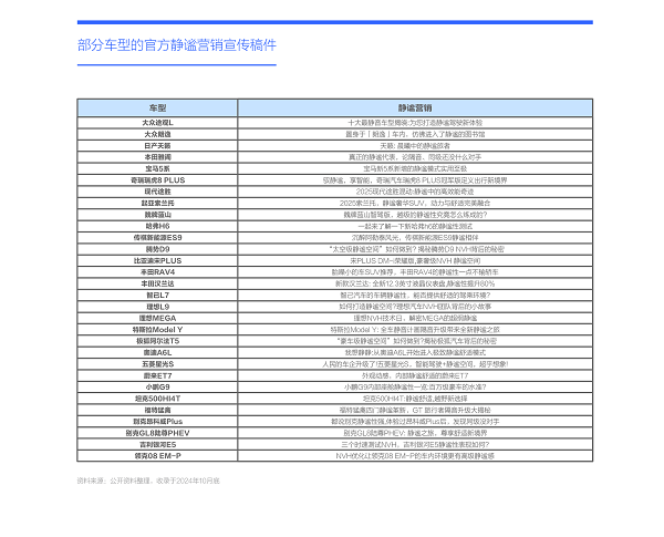 目前中國車市的靜謐營銷涉及廣泛,在靜謐訴求整體偏低的情況下,廣撒網式營銷容易讓靜謐賣點淪為“雞肋”