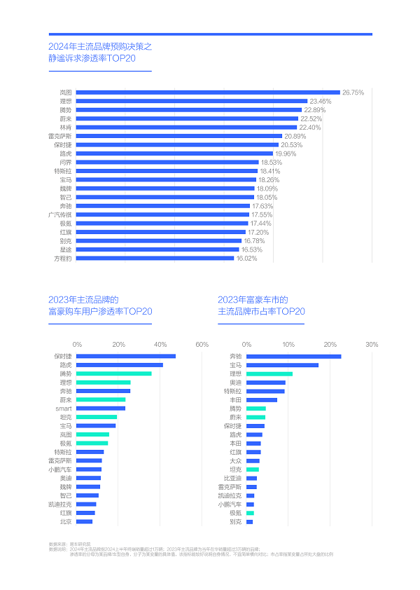 2024年嵐圖、理想、騰勢三大主打大節能SUV/MPV的品牌,領銜靜謐訴求排行,靜謐訴求突出的中國品牌正強勢沖擊富豪車市的傳統格局