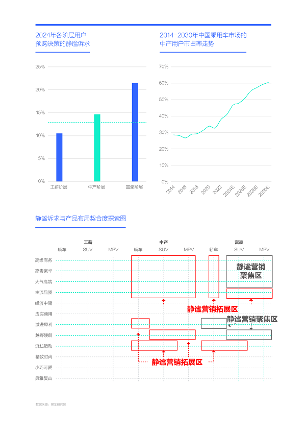 2024-2030年,中產車市將成為主流車市,車企除了持續挖掘富豪用戶的靜謐訴求,也得積極探究中產用戶的靜謐訴求