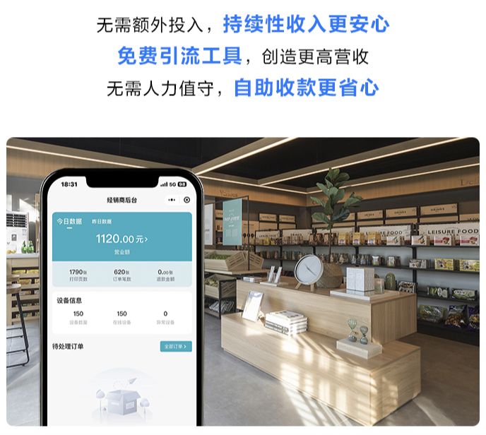 面向零售終端門店“愛蘿卜便民打印服務”*為其提供小程序*支持,門店承接業務無需投入成本即可啟動打印點入網,秒速開啟打印生意。門店老板在這套體系中可以說真正獲得了“零本萬利”的生意機會,共享打印服務不僅帶來額外的流量,為門店創造更高營收,加上用戶全程自助操作,門店無需安排額外人力值守,高效又安心。