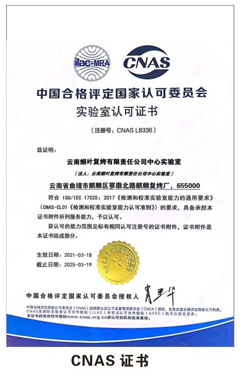 (麒麟復烤廠CNAS認證證書 供圖/趙芯瑜)
