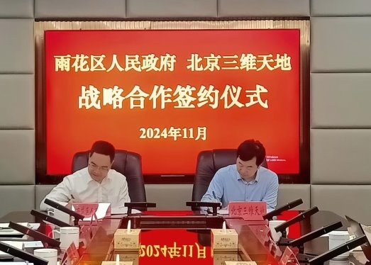 11月5日下午,長沙市雨花區人民政府與北京三維天地科技股份有限公司(以下簡稱“三維天地”)舉行戰略合作簽約儀式。區委書記黃軍其,區委常委、常務副區長周坤,副區長謝國富,以及三維天地高級副總裁王兆君和廣州分公司總經理蔡志歐等共同出席活動。