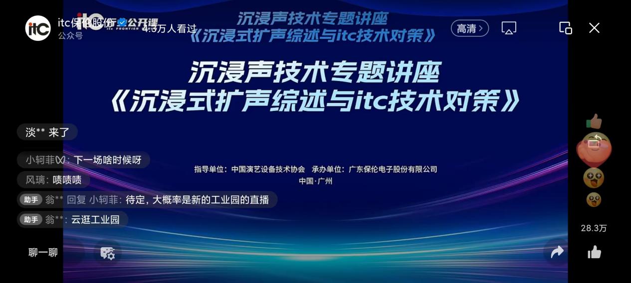 10月30日,以“沉浸式擴聲綜述與itc技術對策”為主題的itc行業公開課——沉浸聲技術專題講座在itc視頻號重磅上線!本次公開課由中國演藝設備技術協會指導,廣東保倫電子股份有限公司(簡稱“itc保倫股份”)承辦,特邀北京工業大學劇場設計與舞臺技術研究所博士李國棋與itc保倫股份聲學部總監何力爭,共話沉浸式擴聲技術!