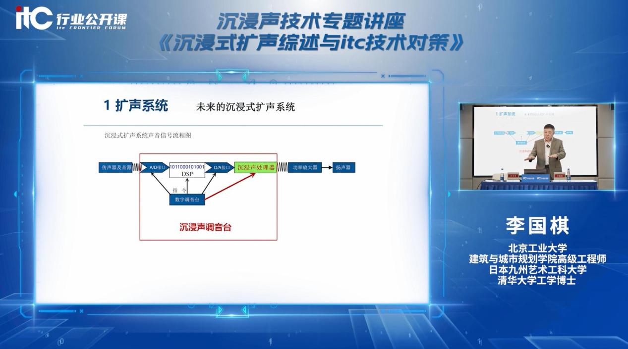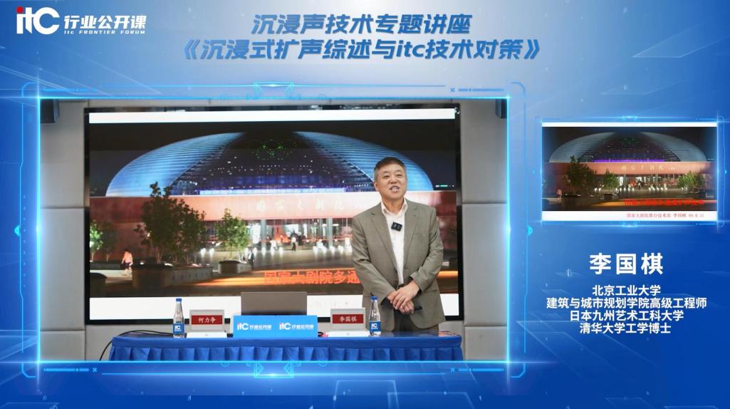 公開課上,李國棋博士結合其豐富的實踐經驗與深厚的學術造詣,圍繞國家大劇院多通道擴聲技術、沉浸聲音響技術、沉浸式擴聲系統構成等方面,展開了通俗易懂且深入細致的講解。