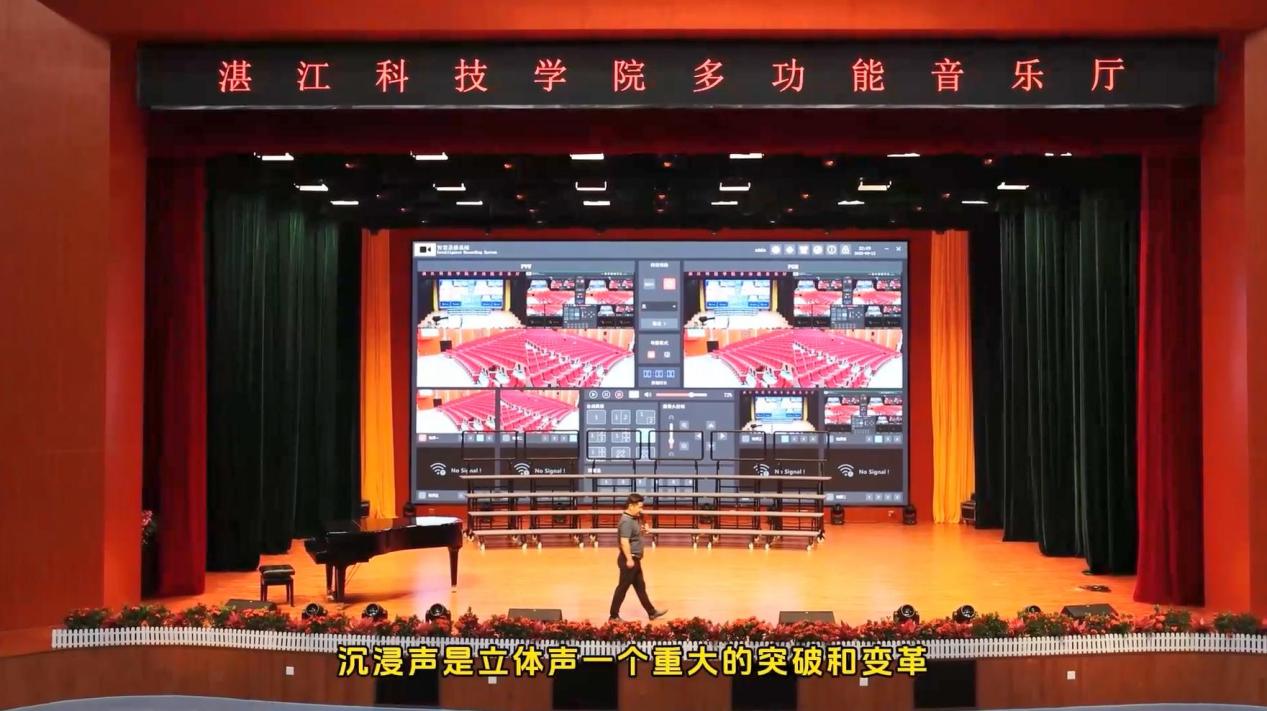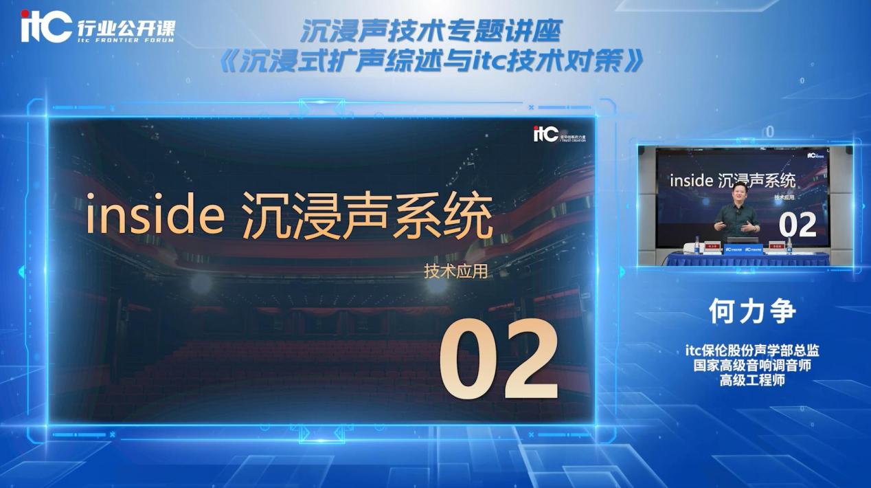公開課上,itc聲學部總監何力爭首先帶來了湛江科技學院音樂廳沉浸聲建設的實例,采用inside沉浸聲技術實現沉浸聲演出與燈光自動追蹤。