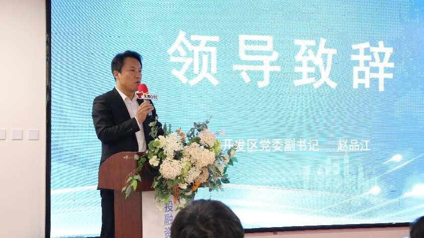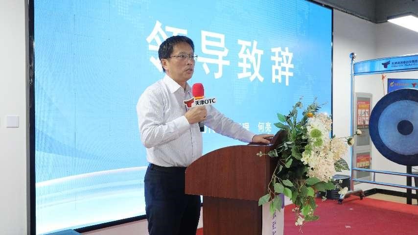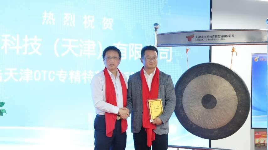 在掛牌儀式環節,天津云創科技有限公司成功登陸天津OTC專精特新專板。企業代表佩戴象征喜慶的紅圍巾,與天津OTC副總經理何亮共同鳴鑼揭牌,開啟了企業發展的新篇章。