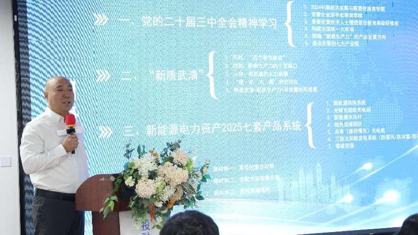 天津OTC副總經理何亮、武清開發區黨委副書記趙品江、武清區工商聯三級調研員安有霞相繼登臺致辭。他們的講話充滿了對新能源產業未來發展的殷切期望。何亮副總經理從資本市場的角度,強調了金融支持對新能源企業發展的重要作用;趙品江副書記則深入剖析了開發區在推動新能源產業集聚和創新方面的獨特優勢;于永勝書記從工商聯的視角,闡述了民營企業在綠色低碳轉型中的關鍵角色。三位領導的一致強調了新能源產業在推動區域經濟綠色低碳轉型中的核心地位,并對本次活動的成功舉辦表達了熱烈祝賀。他們的講話不僅為活動增添了深度和廣度,也進一步堅定了與會者對新能源產業未來發展的信心與決心。