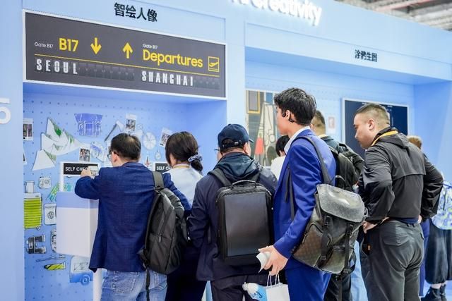 三星展臺,觀眾排隊體驗“智繪人像”