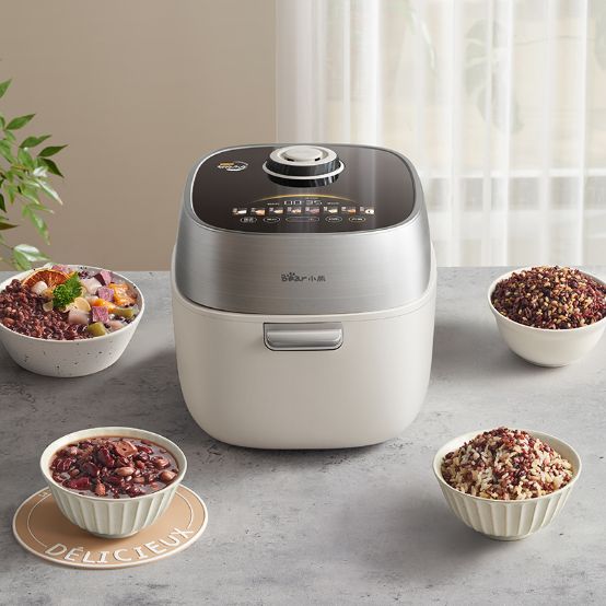 小熊電器鐵鐵煲擊破普通電飯煲的弊端,通過升級變壓控溫系統和立體加熱系統,火力夠猛、熱度夠均勻,讓用戶一鍵享受鐵鍋燜飯的美妙口感。其創新20kPa變壓控溫系統,可使米粒在105℃黃金沸點充分翻滾,能更好促進米粒糊化,使口感更香甜。并且,其創新的上下雙熱源立體加熱系統,上蓋采用120℃備長炭遠紅外發熱,比傳統上蓋加熱面積更大更均勻,熱力可直接穿透米芯,讓米飯熟得更快;底部則采用1100W多段IH大火力包裹式加熱,可讓米飯煮出來更有嚼勁。上下齊熱,整鍋米熟得更快、更均勻,有效避免底部已經焦成鍋巴、上層米還濕塌的尷尬。并且,這樣的加熱方式,也使得用戶在煮雜糧飯時無需提前泡米,一樣能煮出粒粒Q彈香糯的雜糧飯。
