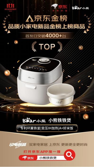 小熊電器鐵鐵煲到底多受歡迎?其于10月20日在京東平臺首發,開售30秒即登頂行業TOP1之后,截止11月11日上午11點,更是在京東平臺上榜京東品質小家電新品金榜。京東金榜作為京東平臺唯一的官方權威榜單,是平臺給予頭部單品的最高榮譽認證。其通過從熱銷、熱度、口碑、品牌、增速5個維度來綜合評價產品,僅篩選TOP20入榜。小熊電器鐵鐵煲綜合得分98分,月復購量1萬+,用戶好評20萬+,其順利登榜,足以見小熊電器鐵鐵煲全方位能打。