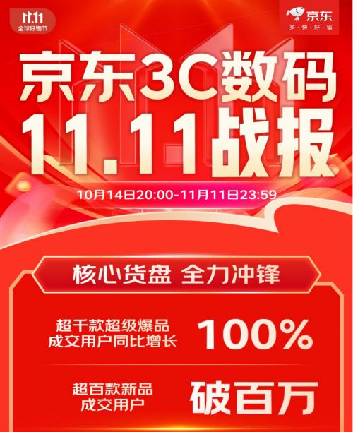 今年的京東11.11憑借“又便宜又好”的消費體驗,成為消費者入手 3C 數碼產品的首選渠道,消費熱情空前高漲。京東3C數碼11.11戰報數據顯示,截至11月11日23:59,超千款超級爆品成交用戶同比增長100%,超百款新品成交用戶破百萬。