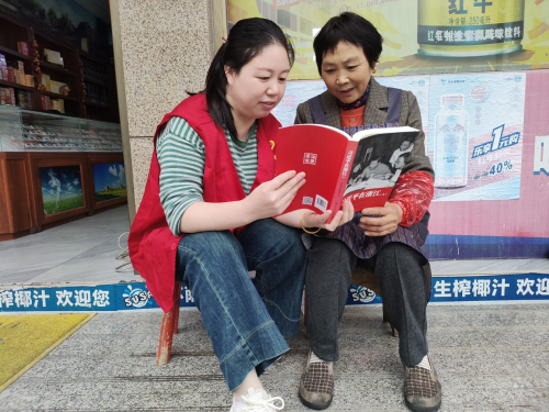 圖為陸小梅為劉敏慧朗讀黨建書籍