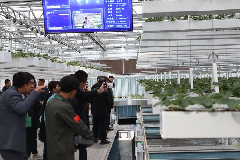 發布會現場,麗華潤康展示了其創新的魚菜共生系統,該系統巧妙地將漁業與種植業有機結合,實現了動物、植物、微生物的和諧共生,展現了生態農業的無限魅力。在發布會結束后,各位領導及嘉賓在麗華潤康團隊的陪同下,前往公司工廠進行實地參觀。