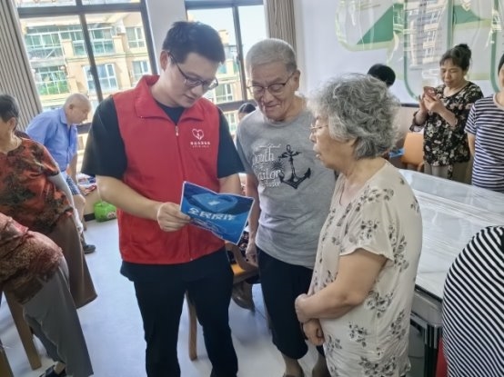 圖為“香溢”志愿者向村民介紹反詐知識