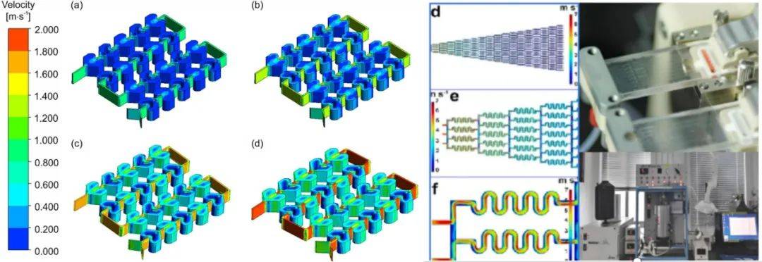 其次是流體模擬計算與結構設計模塊。該平臺通過獨特的模擬計算與微流道結構設計,能夠針對不同反應類型進行傳熱和傳質評估,實現湍流強效混合的結構優化。流道形狀的多樣化設計,如三角形尖角、圓形、折線等,不僅優化了流體混合效果,還減少了壓力損失。平臺同時還支持跨尺度反應控制,實現從單相到多相催化反應的靈活轉換。