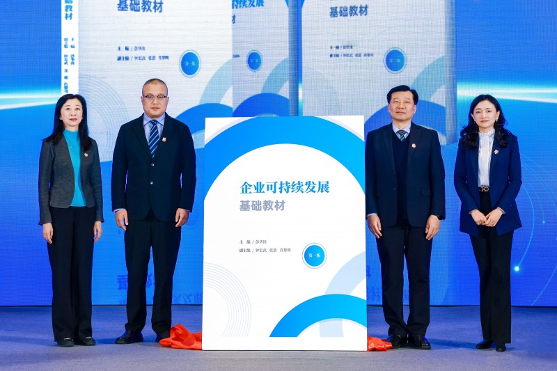 臺達參編的《企業可持續發展基礎教材》正式發布,臺達中國可持續發展委員會主席吳美慧(左一)受邀參與發布儀式