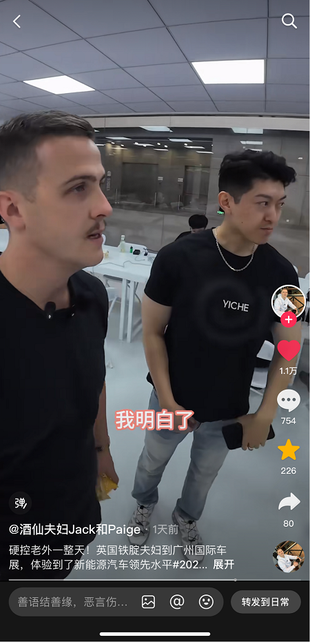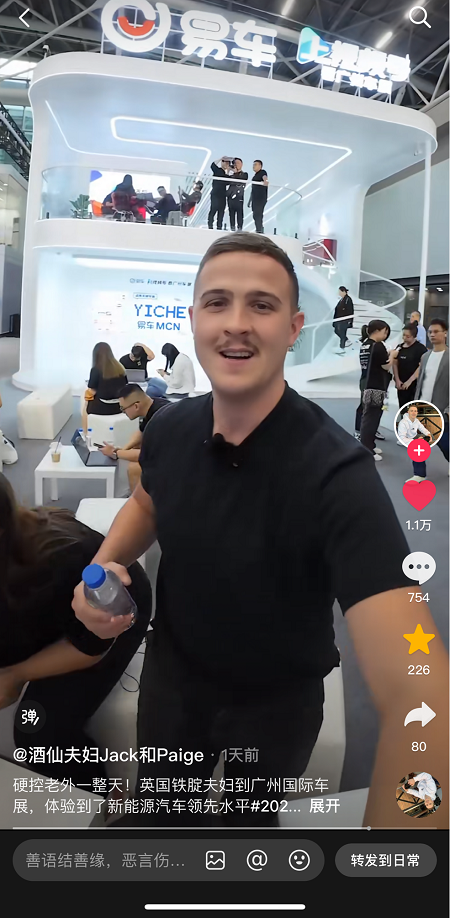 同樣,另一對被中國網友稱為“酒仙夫婦”的Jack和Paige也是活躍在中國社交媒體的外國友人。這次他們來到了廣州車展,并深度打卡各類中國汽車展臺。本次他們是帶著目的來的,他們打算在中國開啟公路旅行,計劃開一輛車來自駕中國游。但是,自駕游也是個體力活,要長時間坐在車內,如果選擇一輛適合的車,就必須做些功課來選車。
