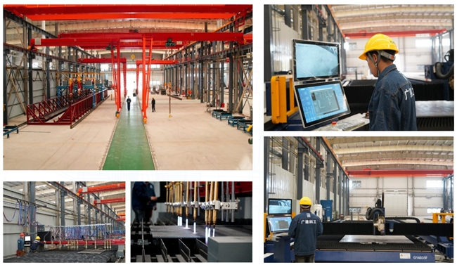 以廣建科工鋼結構智造基地為例,基地專注于鋼結構建筑智能制造。引進國際先進的鋼結構加工設備,如高精度數控切割機、自動化焊接機器人,確保鋼結構構件的精準加工和高效生產;借助數字化建模與虛擬仿真技術,在生產前全面模擬優化鋼結構的設計、制造和安裝過程,有效降低施工安裝風險。基地還秉持綠色環保理念,在鋼材選用、加工工藝及廢棄物處理等方面遵循嚴格環保標準,推動鋼結構建筑向綠色可持續發展轉型。