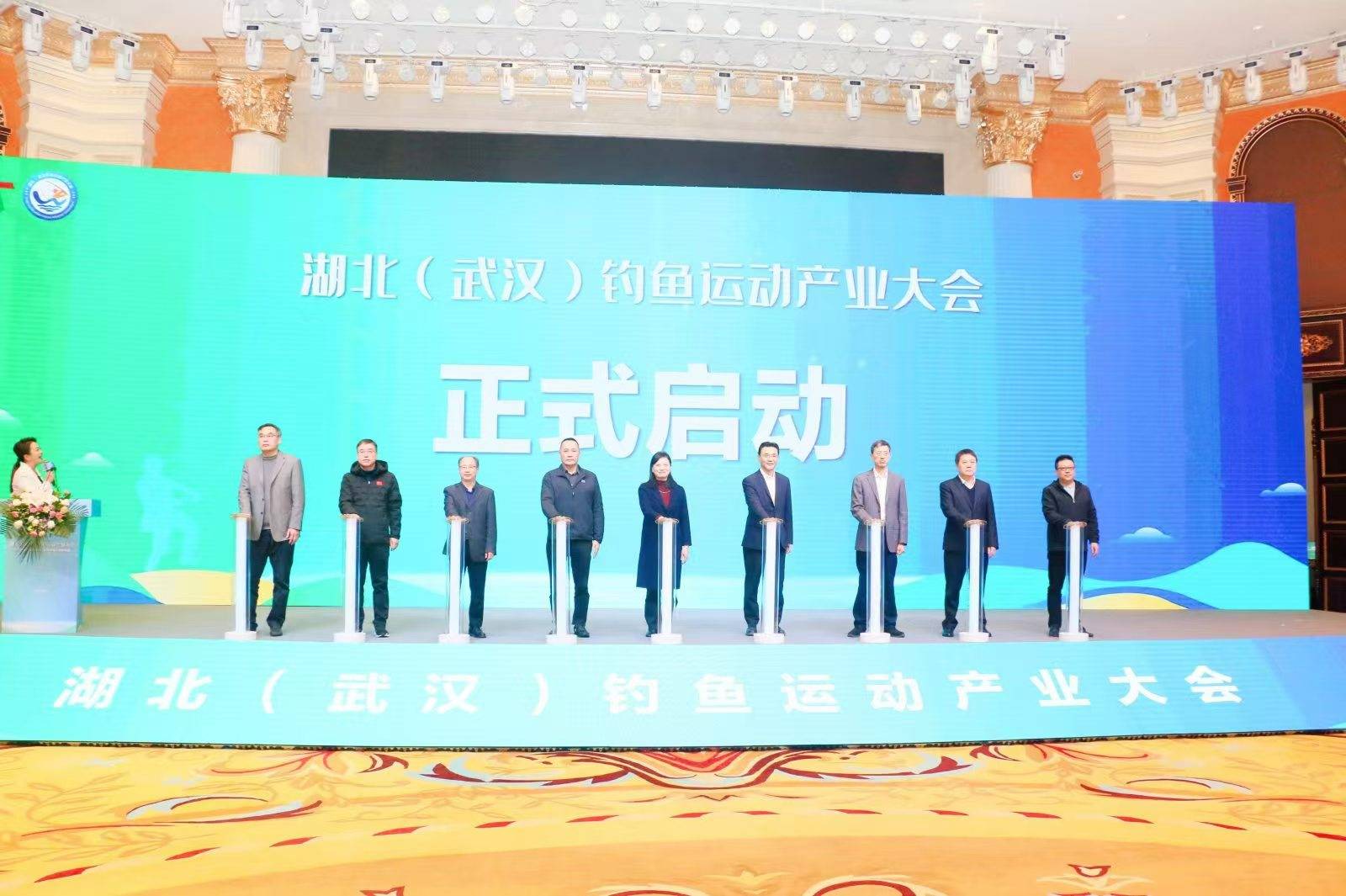 一根釣竿串起上億人群,一條魚線帶動百億產業。啟動儀式上,臺上領導與嘉賓共同攜手,按下啟動按鈕,標志著湖北(武漢)釣魚運動產業大會的帷幕正式拉開。