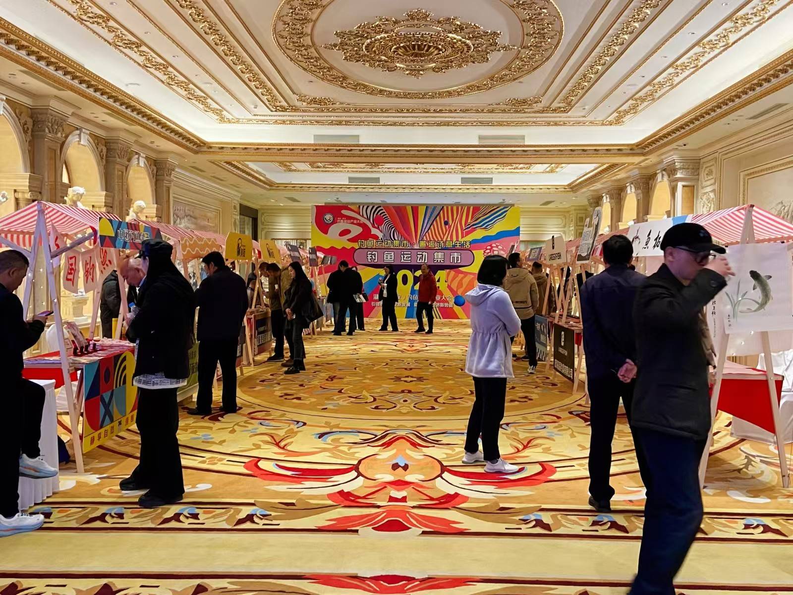 開幕式的同時,酒店一樓大堂舉辦了釣魚運動市集,眾多釣魚相關企業集結在此,展銷的產品涵蓋了高端釣魚裝備、文創產品、釣魚用品等多個領域,共同構成展示了豐富多彩的釣魚產業全景圖。