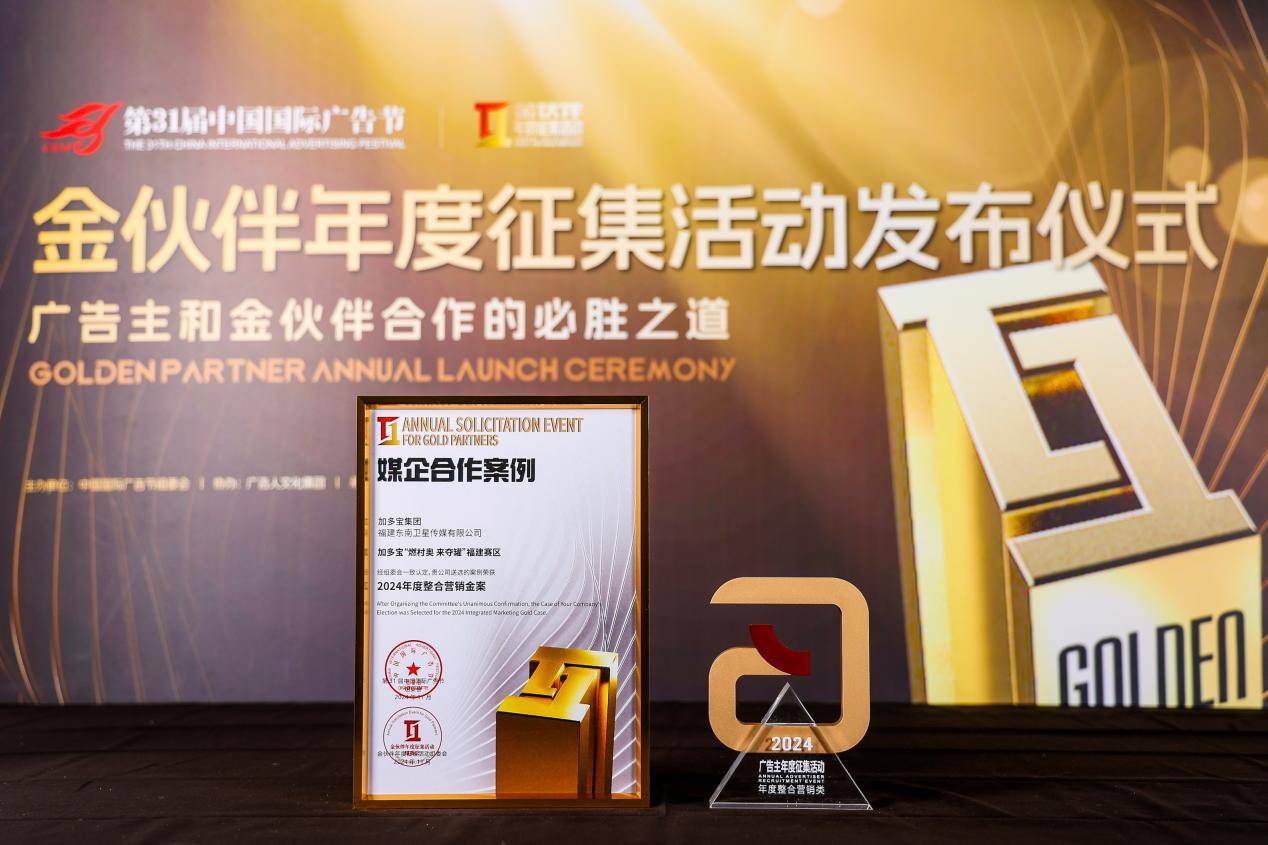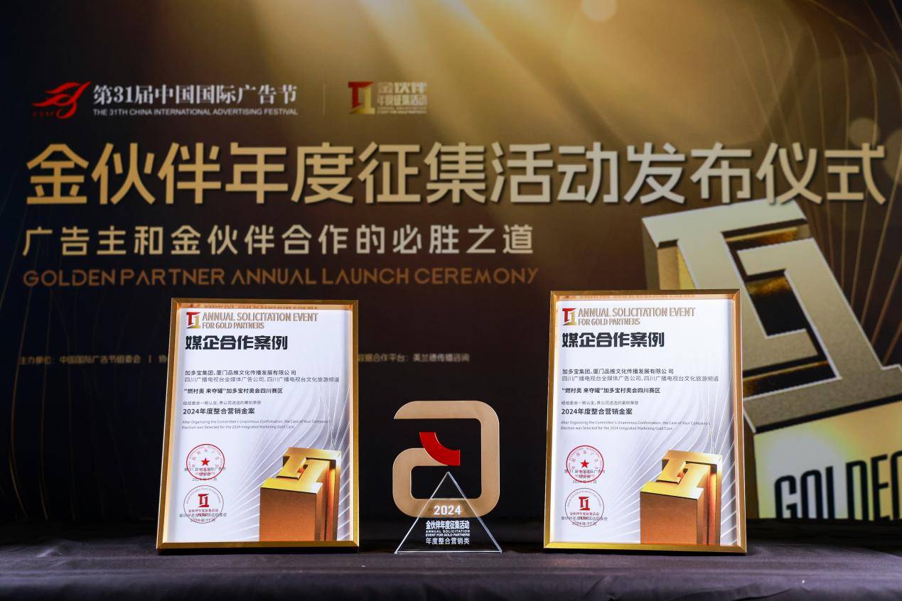 作為中國廣告界歷史悠久、規模宏大、影響廣泛的行業盛會,中國國際廣告節旨在推舉具有標桿意義的人物、具有借鑒作用的優秀案例,匯聚品牌的精神與創新實踐成就,持續為中國品牌與中國廣告的發展引領方向。本屆廣告節更是全新升級,秉承“為中國品牌加油”的宗旨,讓在傳承與創新上雙線引領行業發展的民族品牌綻放異彩。憑借“龍躍萬‘加’ 多財‘多寶’”“燃村奧 來奪罐”等項目,加多寶折桂2024年度整合營銷金案、2024年度IP營銷金案等多項大獎,彰顯出加多寶卓越的品牌創新能力和行業標桿價值。