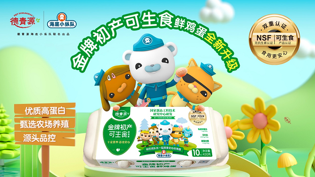 德青源深耕蛋品行業多年,以始終如一的品質和創新為核心,為千千萬萬家庭提供健康安心的蛋品選擇。此次全新推出的“金牌初產可生食雞蛋”IP聯名版,特別為關愛孩子的健康成長而設計,承載著德青源對下一代的滿滿心意,助力孩子的快樂成長,用專業和愛心陪伴每一位家長的選擇。