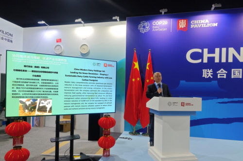 近日,中國工業經濟聯合會發布2024中國工業碳達峰“領跑者”企業名單,現代牧業(集團)有限公司作為唯一的養殖業企業榮列其中。同時,集團“引領綠色革命--塑造全生命周期低碳奶牛養殖行業典范”案例也入選于《聯合國氣候變化框架公約》第二十九次締約方大會中國角“協同推進減污降碳 促進產業低碳轉型”主題邊會發布的《中國企業綠色轉型實踐報告2024》。