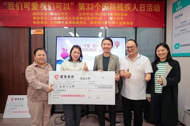 同時,主辦方還為泰得思科技有限公司和金三鷹電子有限公司頒發了“愛心企業”牌子,以表彰他們的慷慨善舉。現場,深圳市富喬米業有限公司也為殘疾朋友們捐贈了大米,表達了他們對殘疾人的深切關愛與支持。