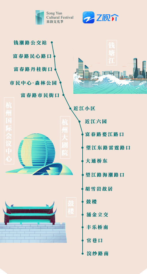 此次活動精選了兩條具有代表性的公交線路——35路和71路。從吳山廣場的歷史沉淀,到湖濱、錢江新城的現代繁華,再到德壽宮、河坊街的古韻悠長,如同兩條文化紐帶,連接起了杭州的過去與現在。無論你是都市的匆匆行者,還是尋覓古跡的旅人游客,都能在這輛專列巴士上,找到屬于自己的宋韻故事。