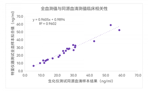 03、測試同源血清樣本在全量程內均表現出高相關性