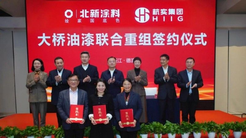 12 月 12 日,在積極貫徹落實中央經濟工作會議精神的背景下,北新涂料聯合重組浙江大橋油漆有限公司(簡稱大橋油漆)簽約儀式在浙江德清舉行。北新建材黨委書記、董事、總經理管理,杭州市實業投資集團有限公司黨委副書記、副董事長、總經理郭東曉出席儀式并講話。亞洲涂料油墨聯合會主席孫蓮英,北新建材副總經理王帥、總經理助理兼投資發展部總經理丁尚華,杭州產權交易所有限責任公司董事長、總經理鐘偉,德清縣人民政府副縣長施敏麗出席儀式。北新涂料董事長、總經理陳燕,杭州市實業投資集團有限公司副總經理盛曉瑾,大橋油漆黨委書記、董事長程磊楠分別代表三方簽署協議。