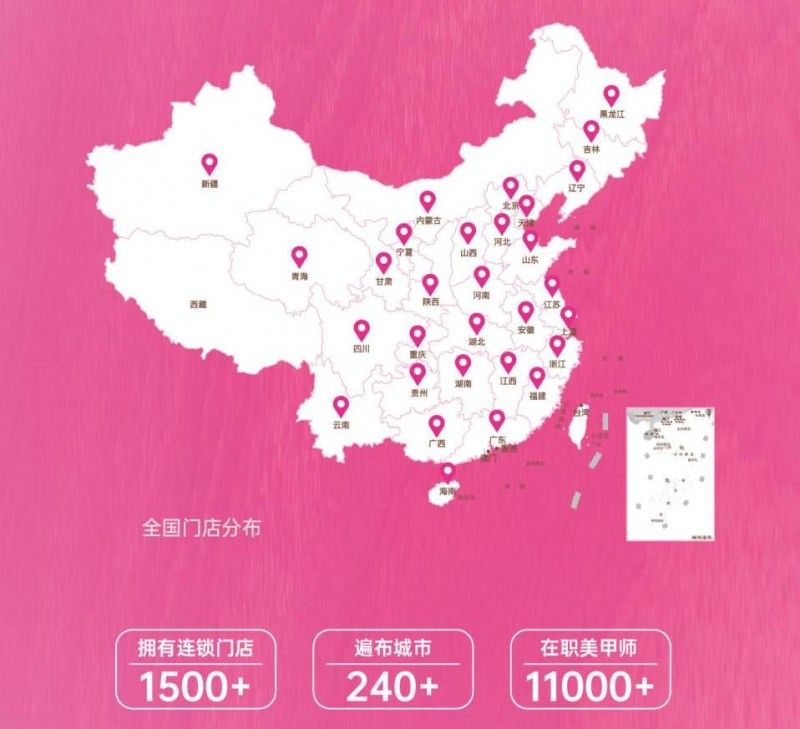 截至目前,全國門店現已突破1500+,遍布城市240+,在職美甲師約11000+, 實力可謂有目共睹!