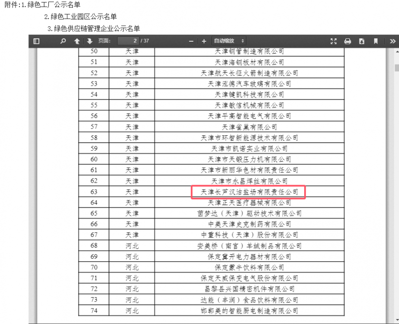 12月16日,工信部官網發布公示2024年度綠色工廠公示名單,天津長蘆漢沽鹽場有限責任公司光榮上榜。天津長蘆漢沽鹽場有限責任公司(以下簡稱漢沽鹽場)是著名的“長蘆海鹽產區”骨干企業之一,具有一千多年的海鹽生產歷史,是國有獨資大型海鹽生產企業,SD-001號食用鹽定點生產企業,也是定點生產企業中唯一一家“中華老字號”企業。公司始終堅持在傳承中創新、在創新中發展,步履鏗鏘走好新形勢下傳統海鹽生產企業轉型發展之路。“吸耀日之光,憑皓月之力,依沃土之廣,聚人文之功”是海鹽生產的真實寫照,也標志著傳統海洋生產企業擁有著豐富的土地、水體資源。依托資源優勢,近年來,漢沽鹽場實施了“以鹽為基礎,推進多元發展”的戰略轉型,在鹽業體制改革助推下,進一步加快了轉型發展步伐,由傳統的單一鹽業發展模式逐步轉變為立體化多元發展,構建出一二三產業融合發展新格局,為推進高質量發展奠定了堅實基礎。
