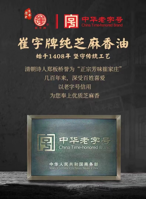 崔字牌小磨香油,自發明至今已有六百余年歷史,是不折不扣的中華老字號。目前,瑞福油脂的石磨群在亞洲居首位,這也是其生產能力的見證者。崔字牌在保留了石磨核心工藝的基礎上,結合現代化生產技術進行產品生產、研發。既保留了傳統技藝,又能夠滿足食品安全需求,可以說是古老的制油技術與現代科技的結晶。
