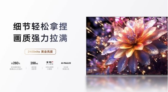 長虹 AI TV:搭載16晶方芯驅動,發光面積比普通Mini LED提升了260%,局部畫面的細節把控極為出彩,云帆AI影像大模型可精準調校畫質,營造影像真實感。基于AI Mini LED技術實現的AI溫控算法和背光溫度控制,達到2400nits的峰值亮度,同層級幾乎最高;觀看時,整體畫面純凈清晰,強光下幾乎看不到太多光暈。288Hz超高刷屏幕下,游戲幀率也極為舒適。
