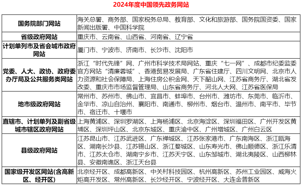 第三系列:2024年度中國領先政務網站