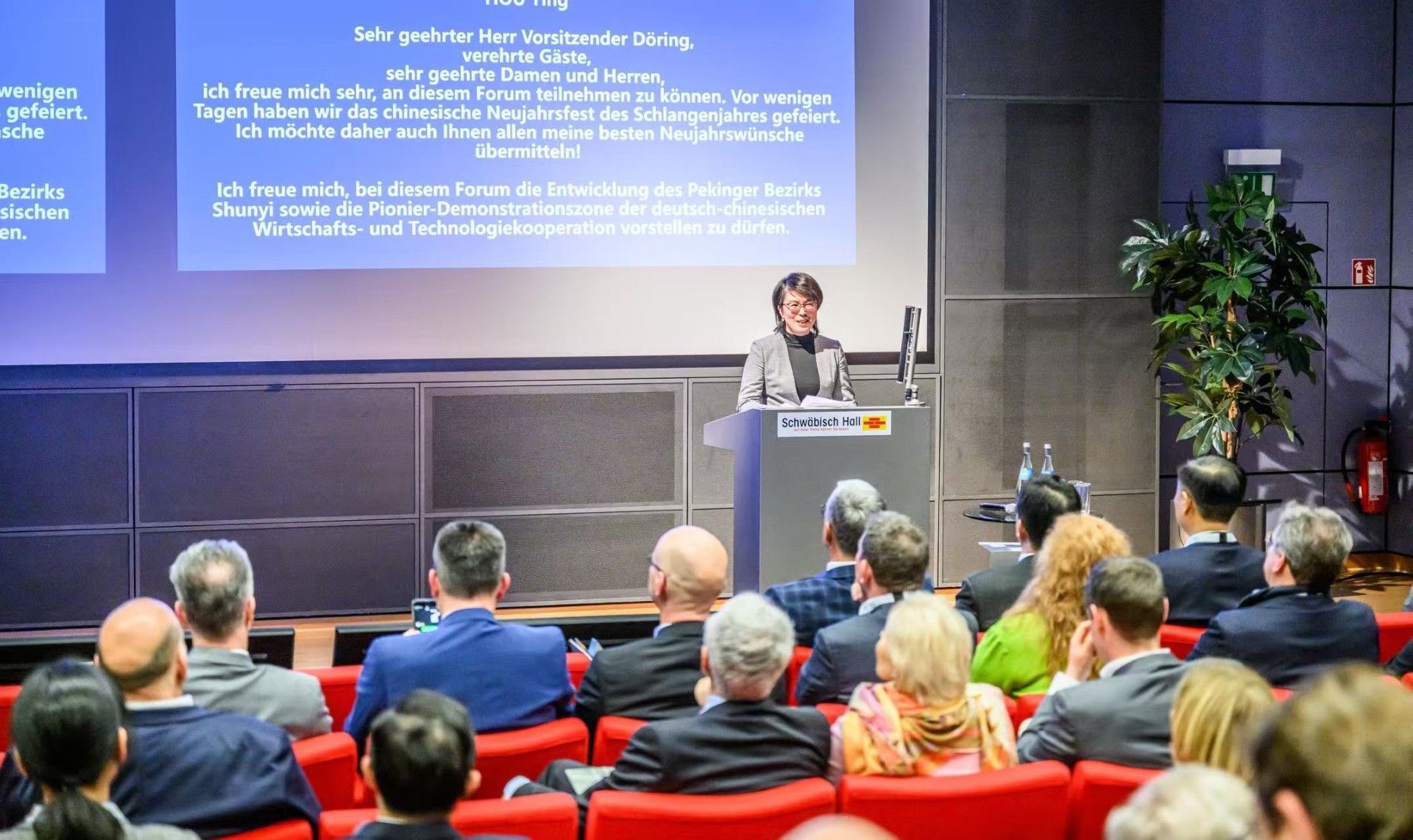 侯穎副區長對順義區和中德示范區做了詳細推介并在致辭中說:去年,在多林主席、楊明副主席的共同推動下,全球市場領導者峰會首次走出歐洲,在順義成功舉辦了首屆“中德(歐)隱形冠軍論壇”,百余位德歐政商界代表來順共敘友誼、共話合作(剛剛致辭的昂科巴赫教授已經是我們的專家顧問了),展現了“融合發展·相互成就”的蓬勃生機。一會,楊明副主席還將播放順義及論壇的視頻,做詳細展示,我就不多介紹了。在各方的攜手努力下,今年5月,第二屆“中德(歐)隱形冠軍論壇”還在順義舉辦,將通過主題報告、專題研討、政企對話、成果展示等環節,深層次探討中德(歐)產業合作新機遇,進一步搭建開放、務實、深入的雙向交流渠道。在此,我誠摯邀請朋友們在春暖花開時節來順參會,我們將繼續營造宜居宜業的國際化類海外環境,與各界友人一起,探索實踐中德(歐)經濟技術合作的新未來!