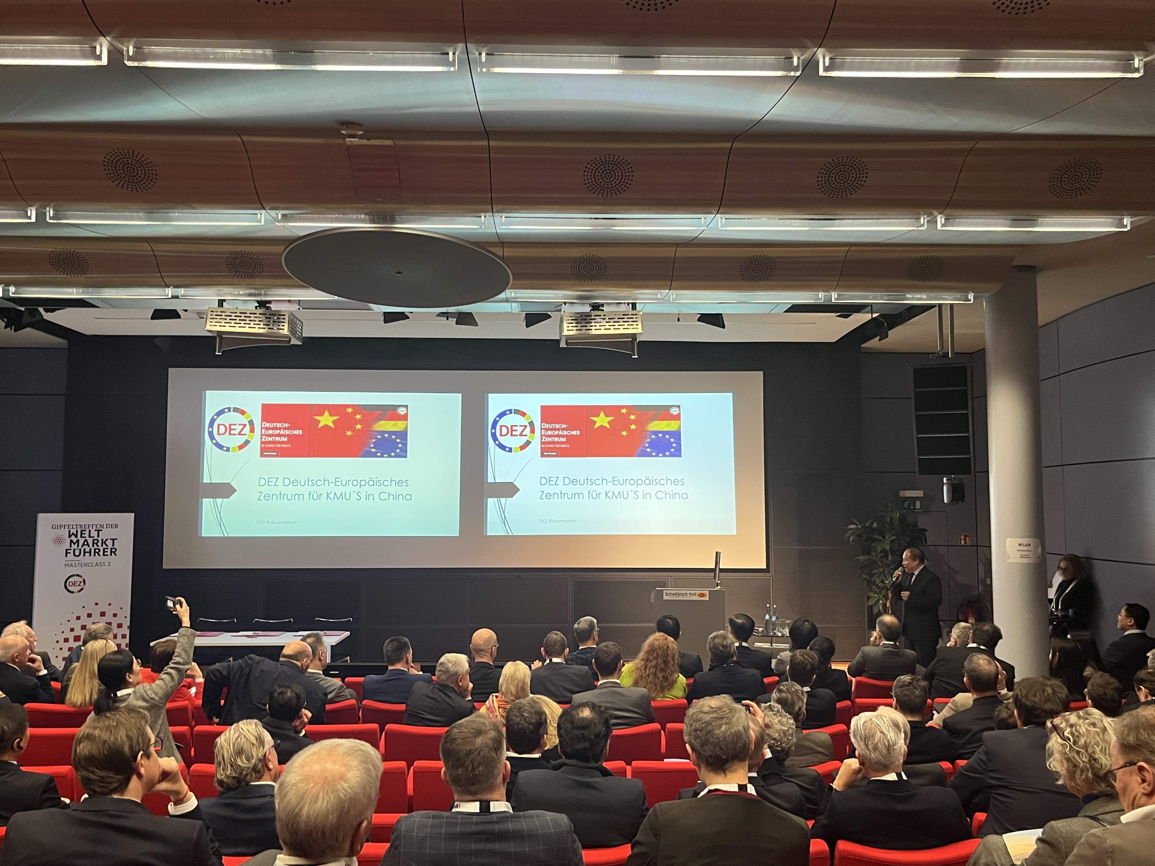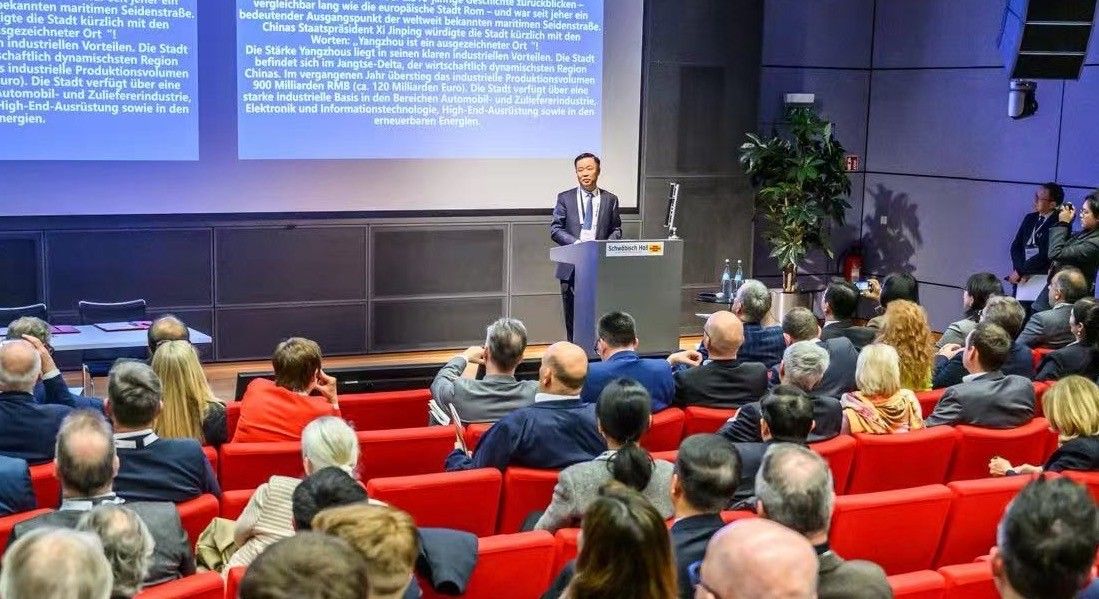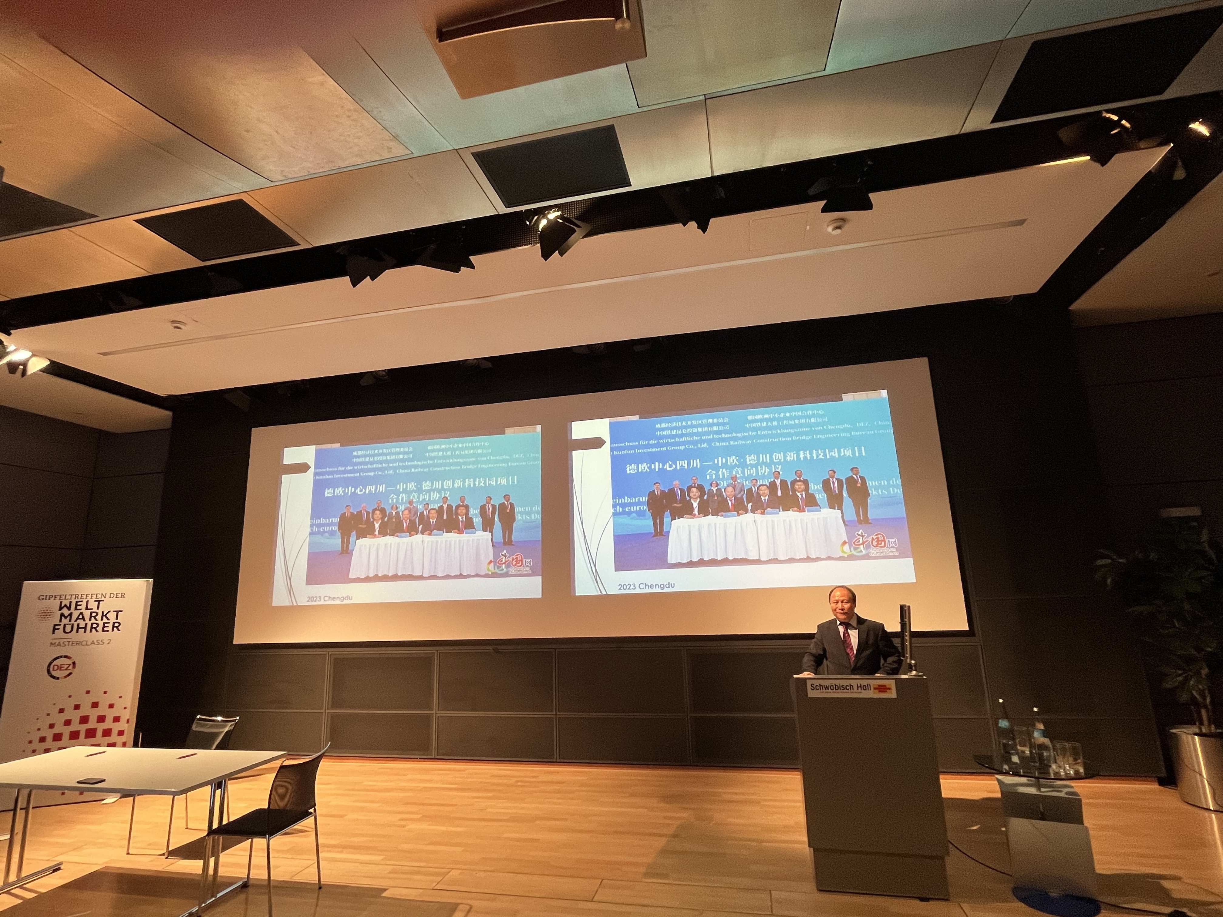 在向與會企業推介DEZ德歐中心北京—揚州—成都項目中楊明副主席詳細闡述了德國歐洲企業為什么應該必須和中國開展合作九點主要理由,作為峰會主辦機構的中國首席代表,呼吁德國歐洲中小隱形冠軍家族企業投資中國正當時。他說:第1,中國已是全球最大的消費市場;第2,中國有全球最具潛力且不斷增長的中產收入人群,(并強調:目前中國已經擁有中等收入群體4.3億,權威經濟機構和專家預測到2035年將達到9億);第3,中國有全球最持續穩定的不斷優化的營商環境;第4,中國有全球最完善的供應鏈;第5,中國擁有全球最活躍科技創新;第6,中國有全球最龐大最具效率的快速通達全球的物流基礎設施;第7,中國政府矢志不渝不斷務實的改革開放;第8,中國正不斷涌現出面向全球消費者的新商業業態; 第9,中國在自動化、數子化和智能化等方面已處于全球領先地位。簡潔明了,字字珠璣,深深撼動了在場的嘉賓和企業。參會企業和專家紛紛表示:德企主張自由貿易和公平競爭,反對“脫鉤”“斷鏈”。德企尤其是全球市場領軍企業世界隱形冠軍50%以上的市場份額都來在海外,中國是其全球最核心的市場之一,任何一家世界隱形冠軍企業缺少了中國市場將無法成為世界隱形冠軍,應該更加看重中國市場規模和潛力,在捍衛多邊主義、應對氣候變化等全球性挑戰方面,中國更是不可或缺的合作伙伴,中國在人工智能和數字化等領域的創新實力提升印象深刻,中德企業各有所長、優勢互補,應夯實互信、深化合作。參會企業均積極報名參加在中國舉辦的第二屆論壇和考察合作。
