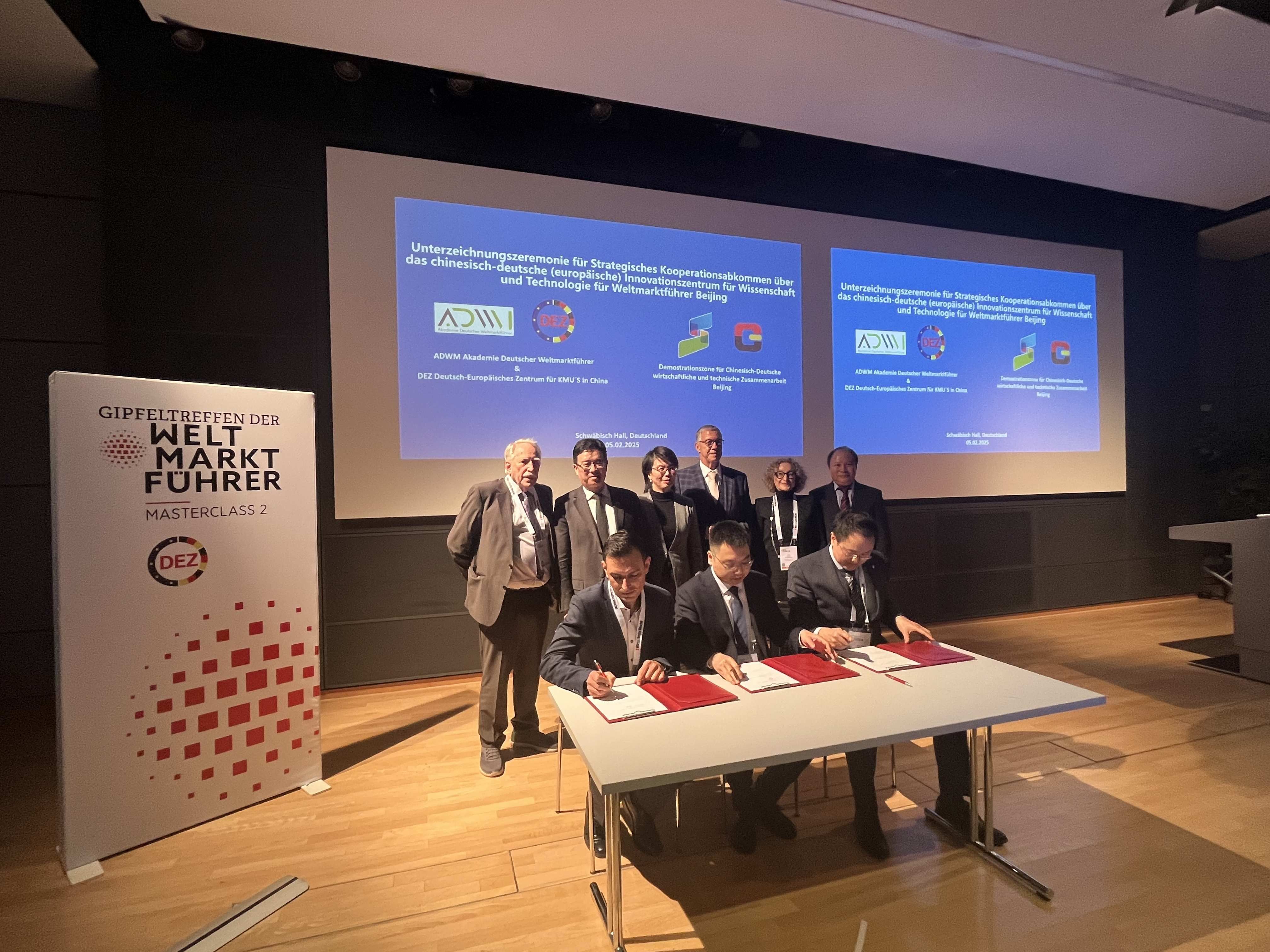 圖10:北京中德經濟技術合作先行示范區與ADWM德國中小企業世界隱形冠軍學會和DEZ德國歐洲中小企業中國合作中心簽署合作協議(組委會供圖)