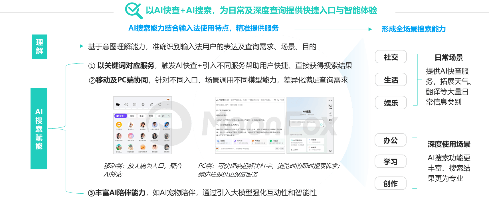 在新型AI工具產品中,AI輸入法以跨平臺終端能力覆蓋海量用戶和全場景,充分放大AI能力,實現輸入即搜索革新用戶體驗,帶來更大想象空間。