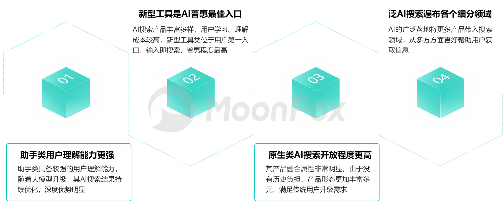 AI的快速發展超過市場預期,用戶對其整體認知、參與、試用程度快速提高。而AI本質是落實科技普惠,搜索場景最貼近用戶需求,首先迎來變革。