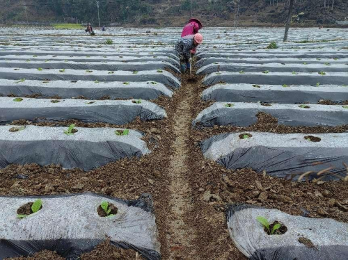 圖為煙農在移栽煙苗。謝偉潮 攝