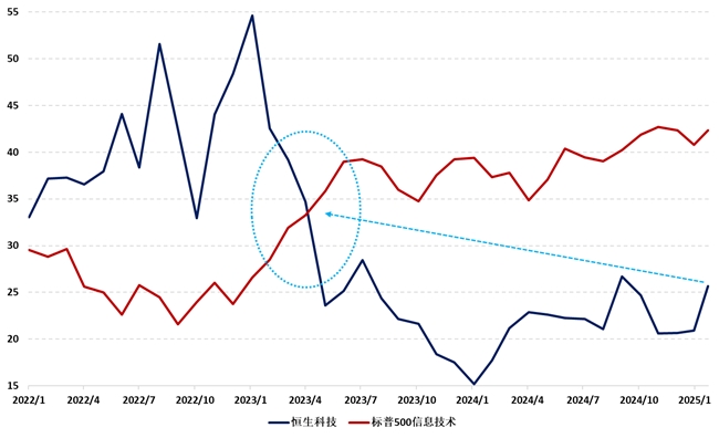 2025年開年以來,中國企業在科技領域取得顯著進展。其中,DeepSeek開源大模型的推出改變了全球對中國科技實力的認知。2月以來,高盛、瑞銀、德意志銀行等外資機構紛紛發表研究報告,看多中國資產,尤其是擁有核心技術的科技企業。科技企業的崛起帶動了資本市場的情緒,境內外市場上的中國科技公司表現強勁。港股無疑成為最大受益者,恒生科技指數是近期最受市場關注的資產之一,該指數于2月下旬上漲突破去年10月初的高點,帶動A股科技板塊上漲。但是,港股市場近期也開始出現拋壓現象。在經歷了一個月的大漲后,越來越多的投資者開始關心科技股行情的暫歇是否代表上漲行情進入尾聲,亦或是短期回調后再次迎來買點。