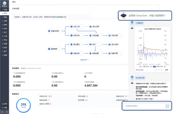 近日,找鋼集團旗下鋼貿企業數字化管理SaaS產品胖貓云完成升級。通過嵌入找鋼AI,并全面接入DeepSeek-R1多模態分析大模型與DeepSeek-V3垂直領域推理引擎,胖貓云能夠更高效地處理和分析客戶問題,為客戶提供更精準的數據洞察和決策支持。