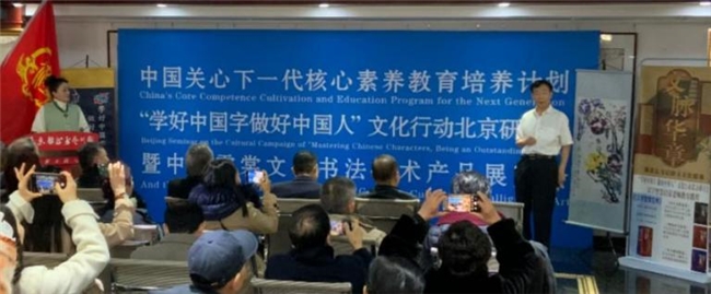 北京研討會上中國關心下一代核心素養教育培養計劃“學好中國字 做好中國人”文化行動秘書長、中建文化發展有限公司總經理王清虎,聚焦漢字智慧啟蒙老師培養發表講話。說明漢字在中華文化中的核心地位,分析當前漢字教育面臨的問題,提出培養優秀漢字啟蒙老師的方法和途徑。及“漢字智慧啟蒙老師”培養意義: