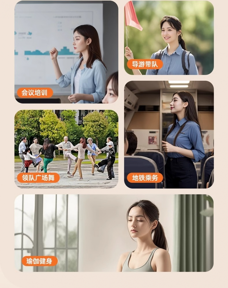 傳統頭戴式擴音器因重量大、久戴壓迫頭部等問題飽受詬病。金運M10擴音器創新采用領夾式無線結構,機身僅重8克(約一枚硬幣重量),搭配隱形背夾設計,可靈活固定于衣領、口袋或背包帶,徹底擺脫頭戴設備的沉重感。無論是教師全天授課、導游長時間講解,還是直播達人多場景切換,M10均能實現“無感佩戴”,讓聲音傳遞更自由。